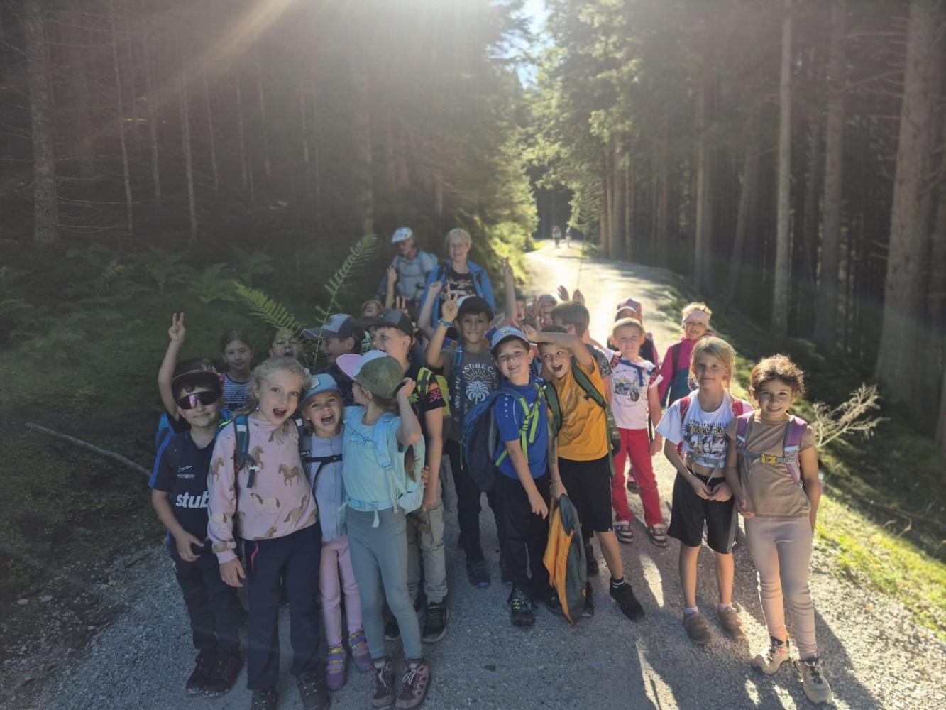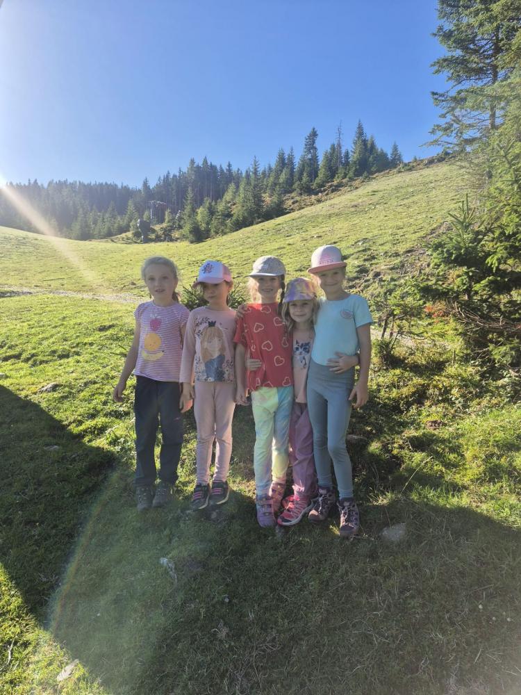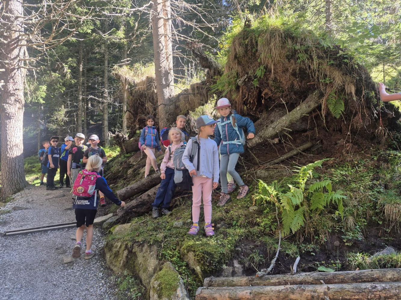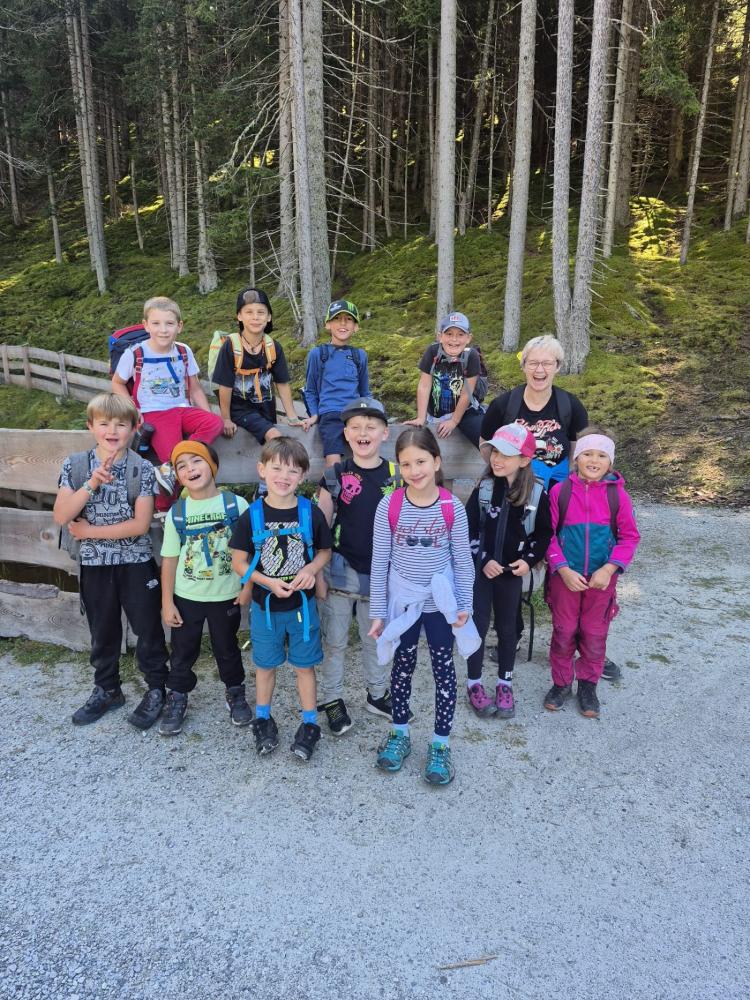 Unterwegs wurde natürlich fleißig gejausnet, gesammelt, entdeckt und gelacht. Manche Kinder liefen vor lauter Energie wie die Gämse den Hang hinauf, während andere lieber ganz genau jeden Käfer am Wegesrand untersuchten. So war für jeden etwas dabei!