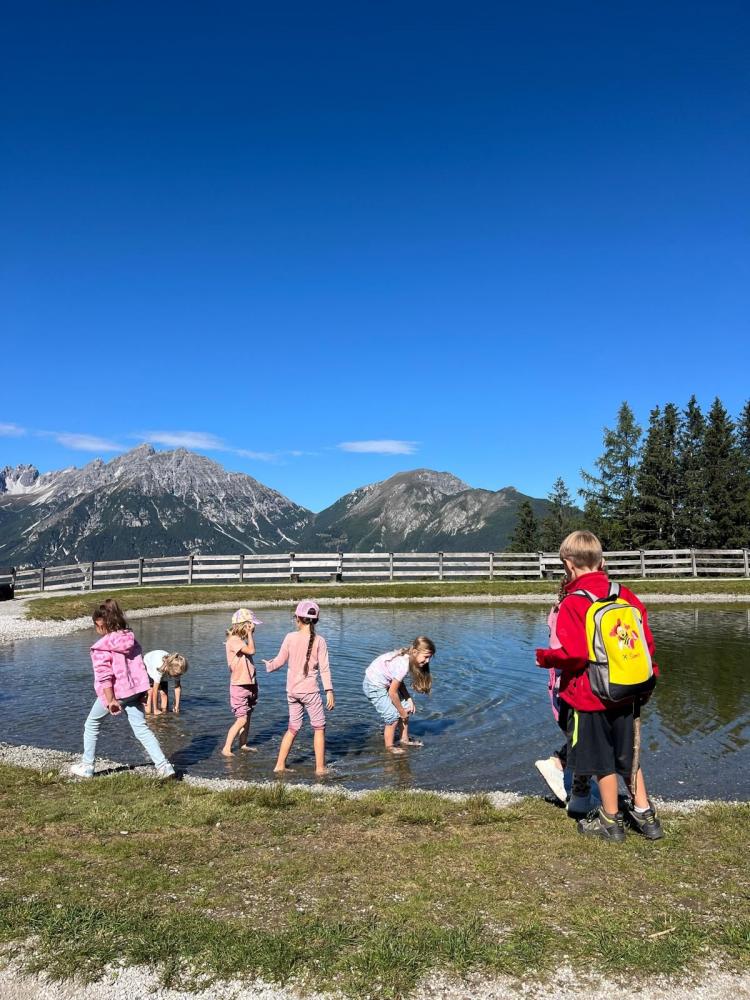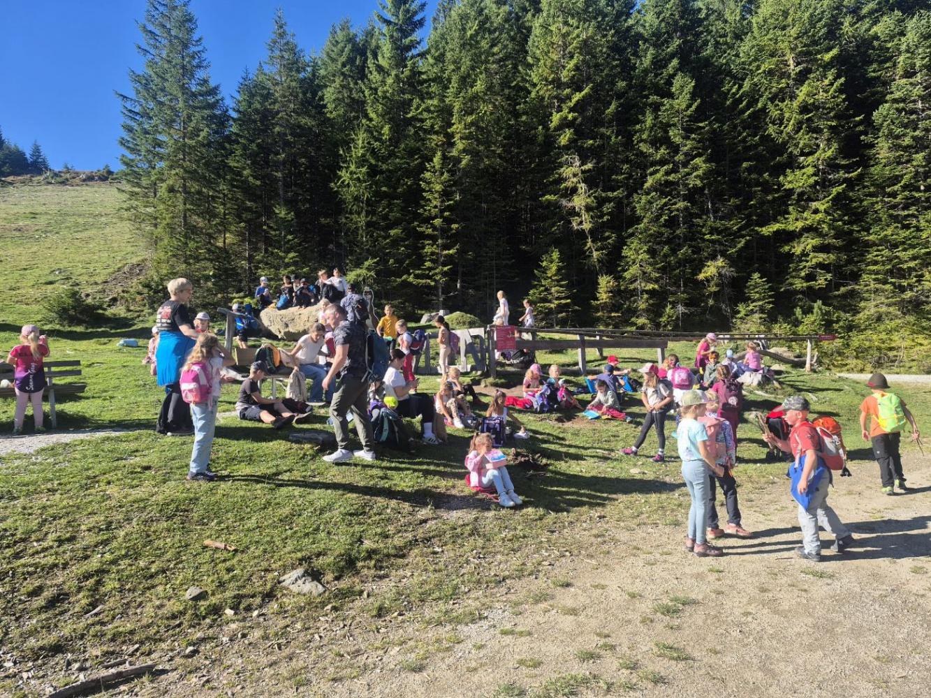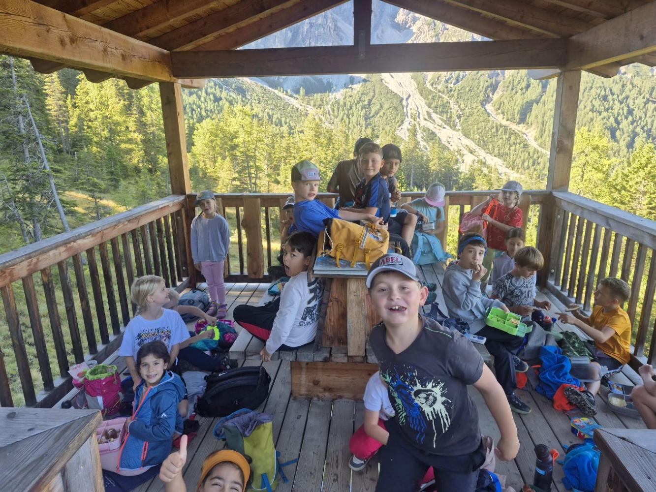 Unterwegs wurde natürlich fleißig gejausnet, gesammelt, entdeckt und gelacht. Manche Kinder liefen vor lauter Energie wie die Gämse den Hang hinauf, während andere lieber ganz genau jeden Käfer am Wegesrand untersuchten. So war für jeden etwas dabei!