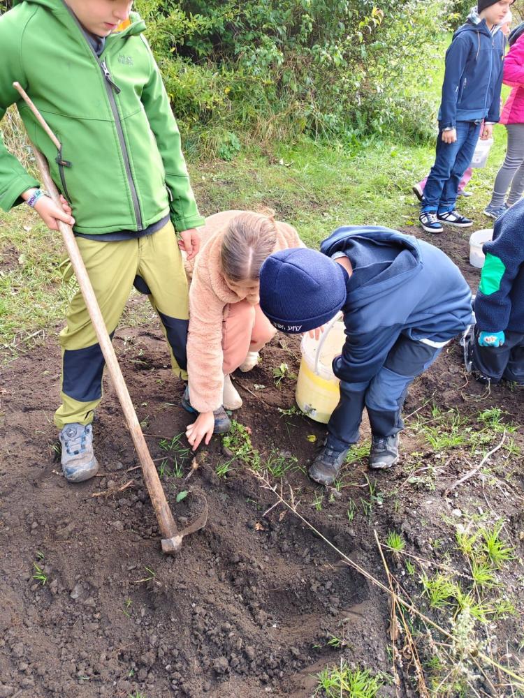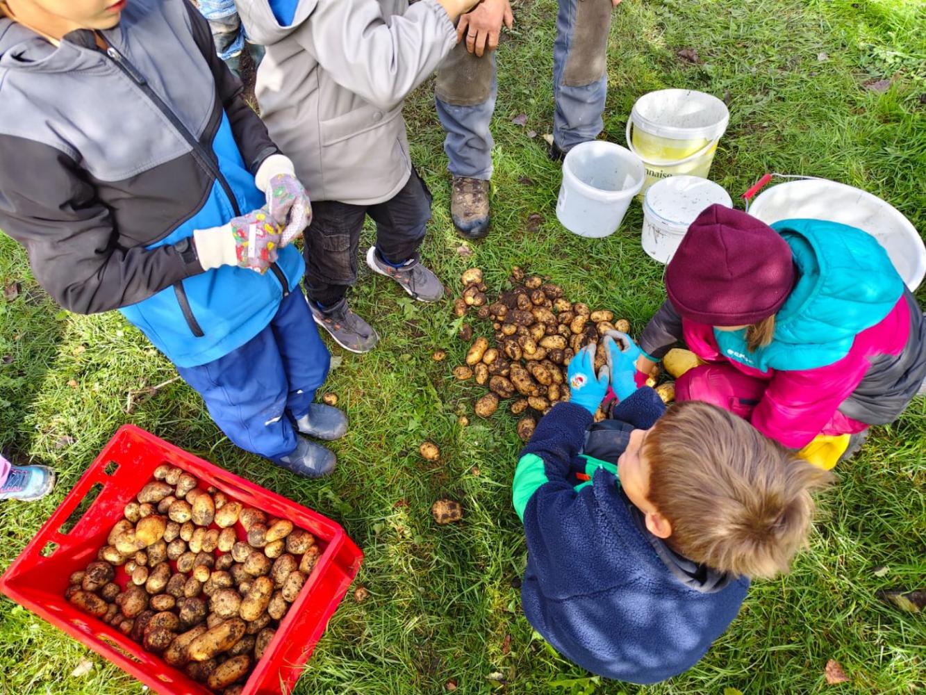 Heute war ein ganz besonderer Tag für unsere zweiten Klassen: die große Kartoffelernte stand auf dem Programm!