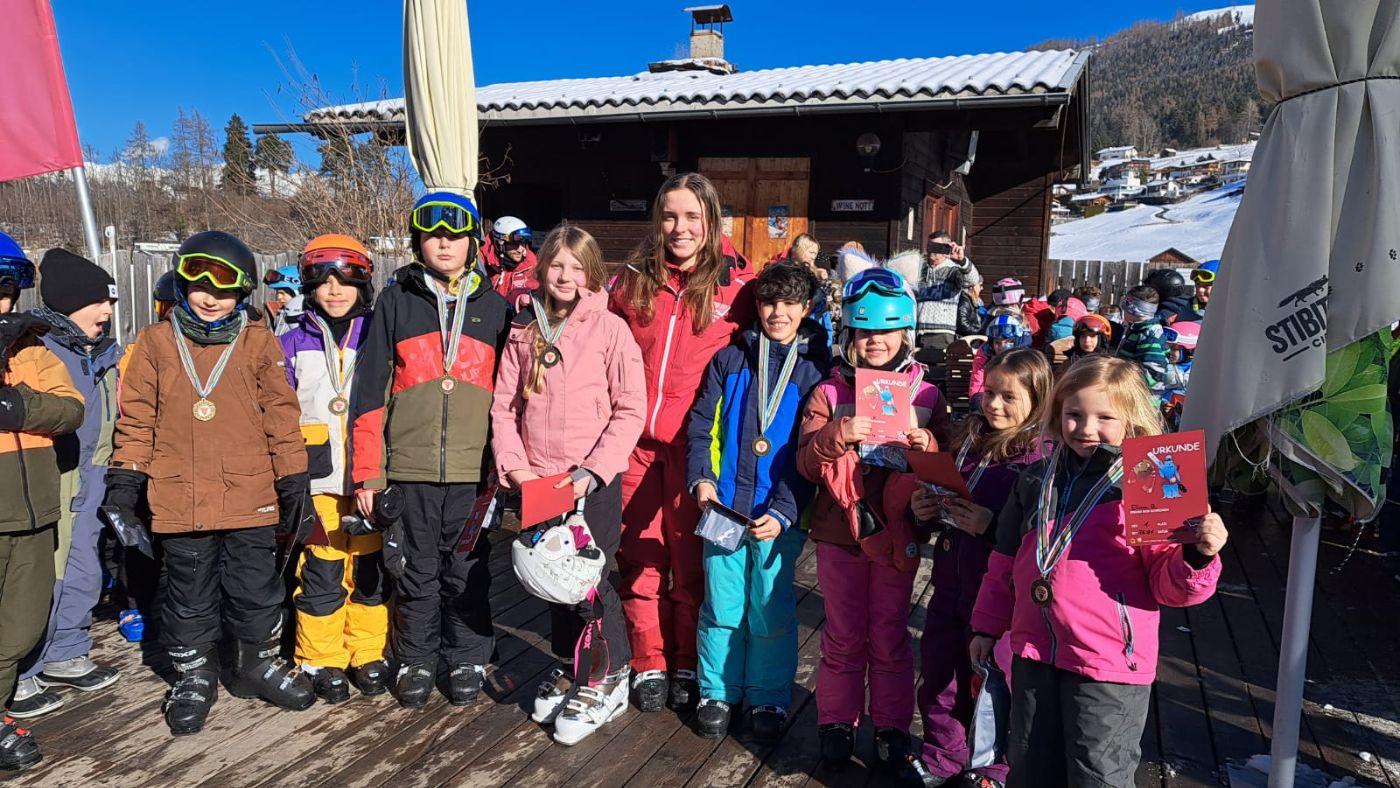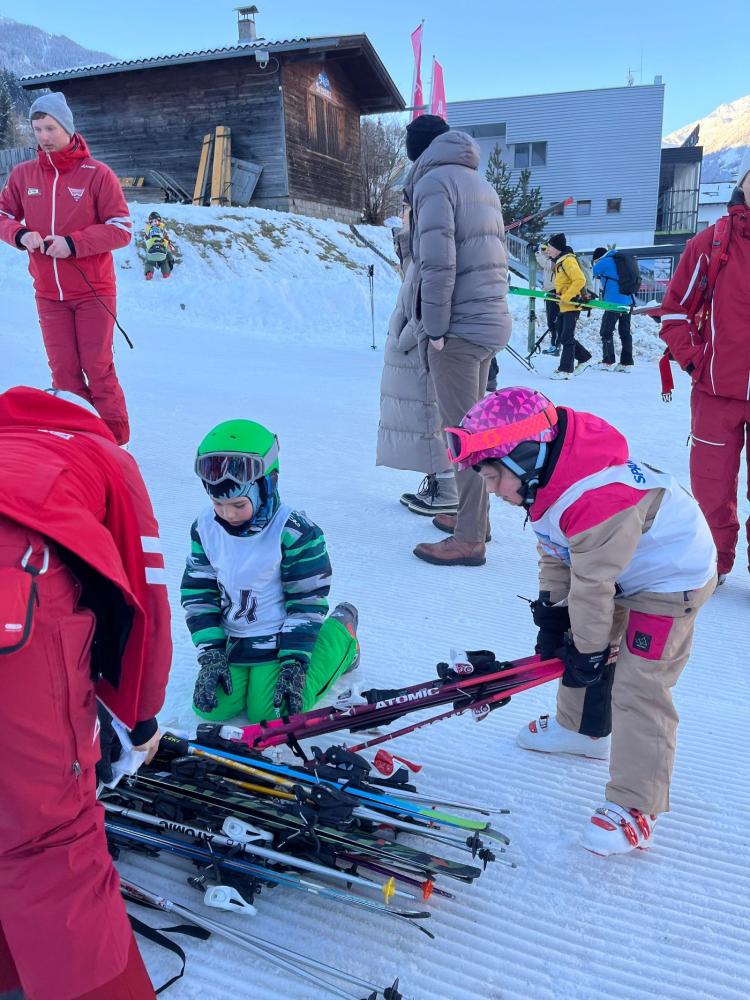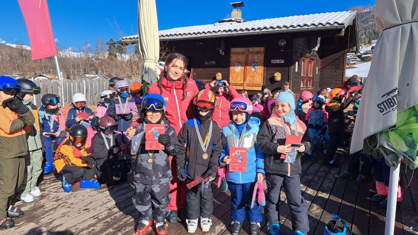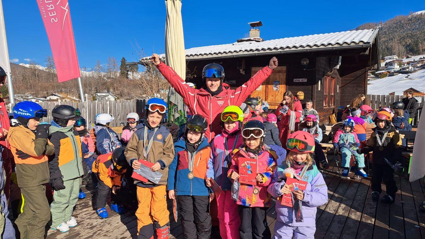 Zum Abschluss der Skiwoche fand ein großes Rennen statt. Dabei zeigten alle Kinder noch einmal, was sie in dieser Woche gelernt hatten – und das ganz ohne Leistungsdruck. Alle waren Gewinner und durften stolz auf sich sein. Besonders schön war, dass so viele Eltern zum Anfeuern gekommen sind. Auch die Direktorin der Volksschule Mieders sowie der Bürgermeister ließen es sich nicht nehmen, beim Rennen dabei zu sein und die Kinder zu unterstützen.