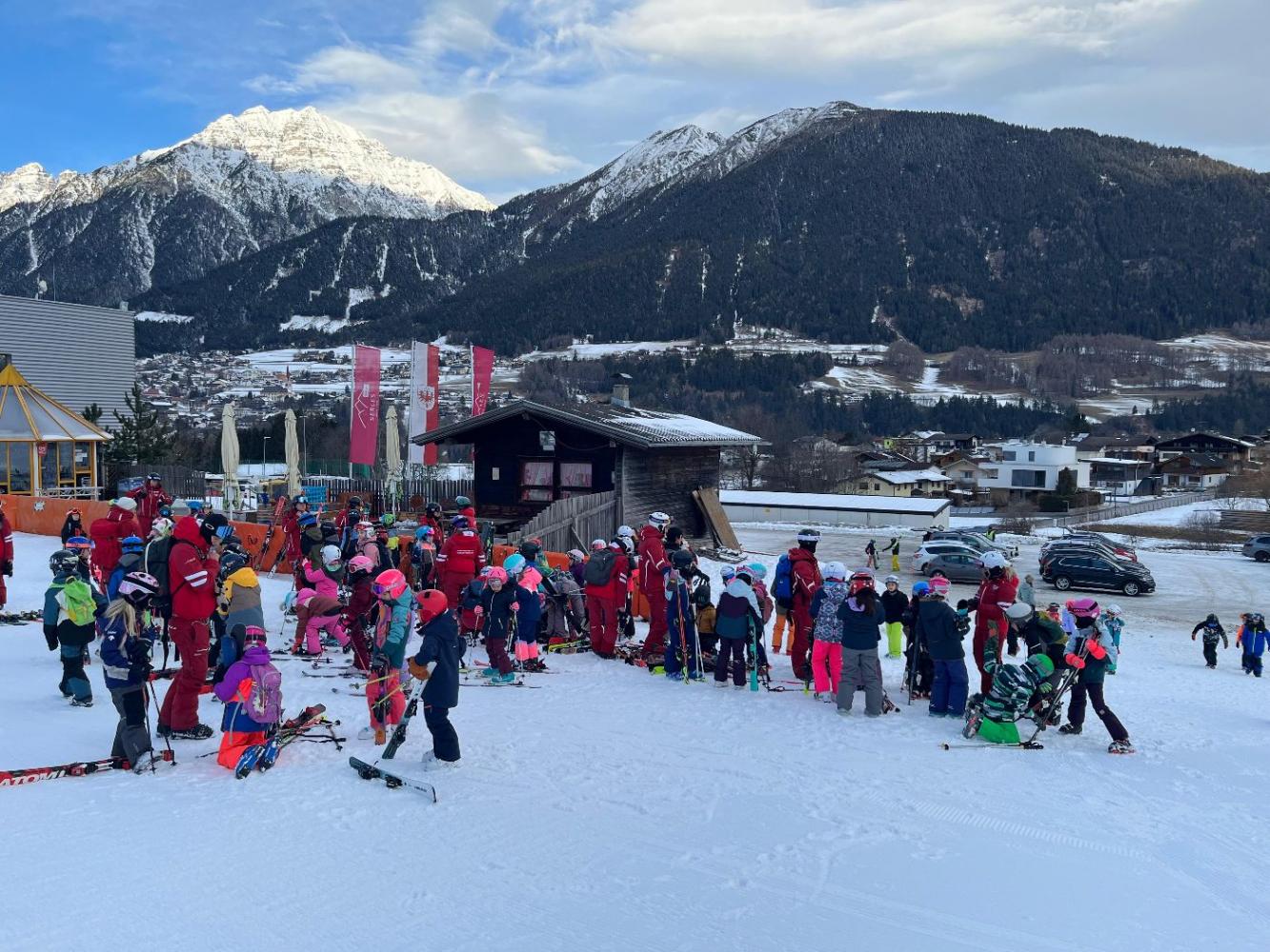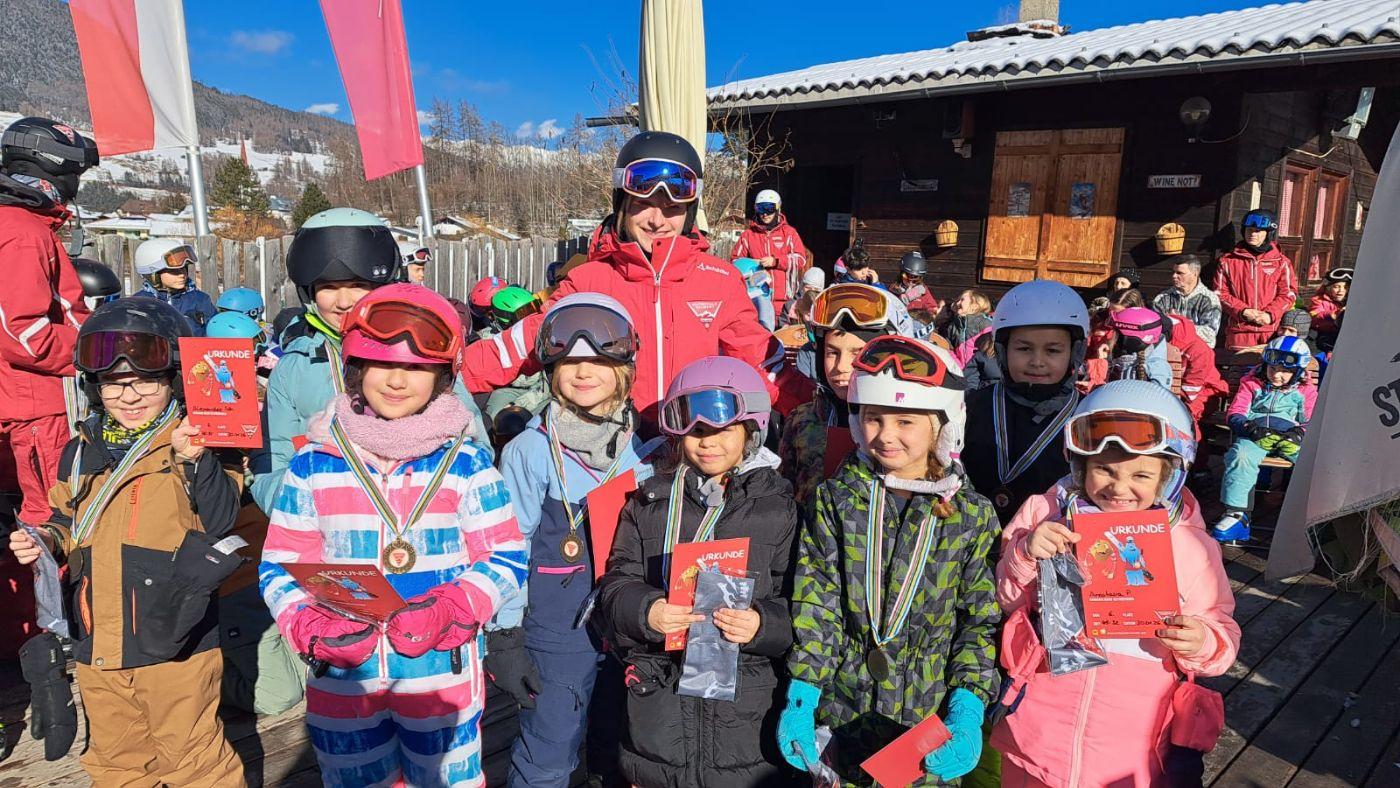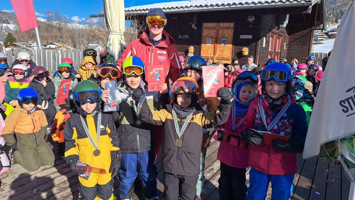 Zum Abschluss der Skiwoche fand ein großes Rennen statt. Dabei zeigten alle Kinder noch einmal, was sie in dieser Woche gelernt hatten – und das ganz ohne Leistungsdruck. Alle waren Gewinner und durften stolz auf sich sein. Besonders schön war, dass so viele Eltern zum Anfeuern gekommen sind. Auch die Direktorin der Volksschule Mieders sowie der Bürgermeister ließen es sich nicht nehmen, beim Rennen dabei zu sein und die Kinder zu unterstützen.