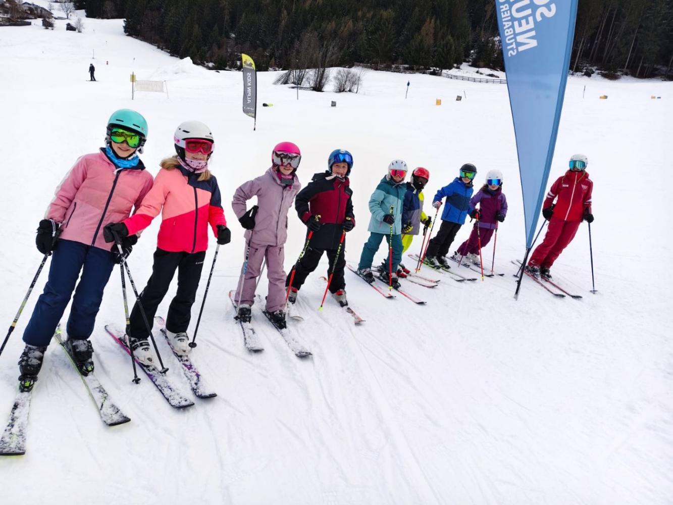 Mit viel Motivation und Begeisterung standen die Kinder jeden Tag auf den Skiern. Egal ob Anfängerin oder Fortgeschrittener – alle waren mit Freude dabei und konnten große Fortschritte machen. Unterstützt wurden wir dabei von der Skischule aus Neustift, deren Skilehrerinnen und Skilehrer mit viel Geduld, Können und guter Laune für abwechslungsreichen und sicheren Unterricht sorgten.Täglich trafen sich alle Kinder gemeinsam zur Jause, bei der entweder Pommes genossen oder selbst mitgebrachte Snacks geteilt wurden. Diese gemeinsamen Momente stärkten nicht nur die Energie, sondern auch den Zusammenhalt untereinander.