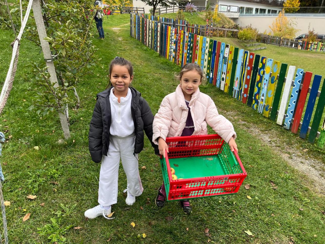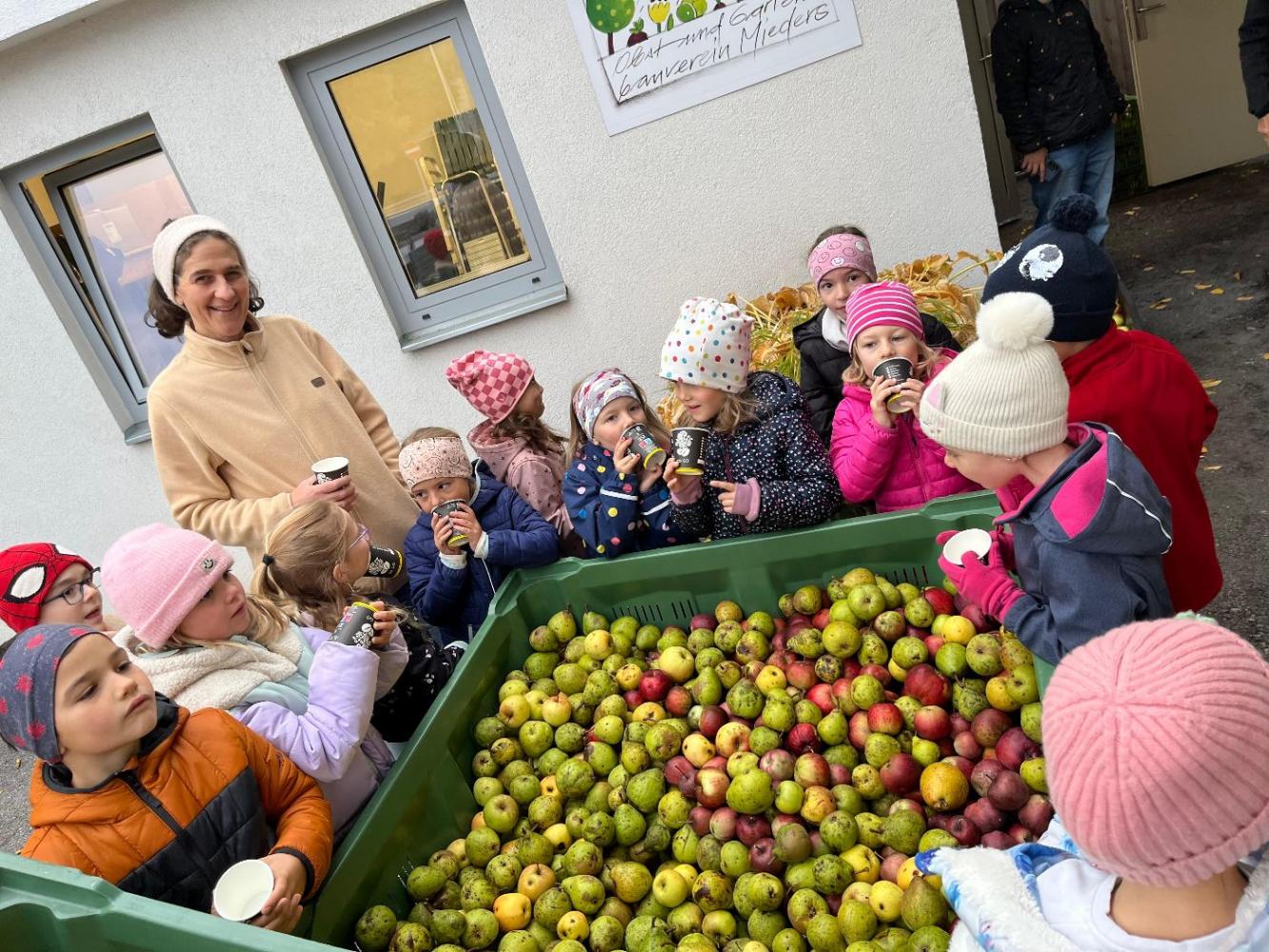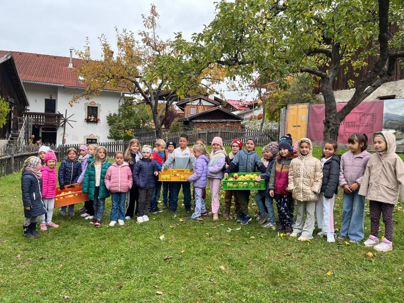 Am Mittwoch dieser Woche machten sich die ersten Klassen der Volksschule Mieders auf den Weg in den Schulgarten, um die reifen Äpfel zu ernten. Mit großer Begeisterung sammelten die Kinder die bunten Früchte ein – es wurde eifrig gesucht, entdeckt und in Körbe gelegt.
