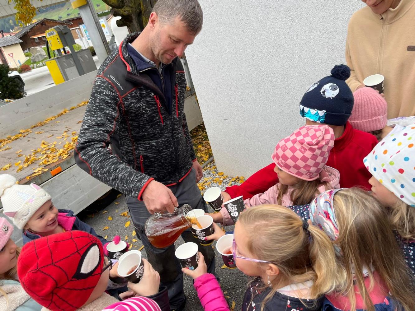 Zum Abschluss durften alle den frisch gepressten Apfelsaft verkosten – und er schmeckte natürlich wunderbar!